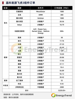 在亚太地区,与巴基斯坦合作伙伴MesolSolar、澳大利亚合作伙伴GoSolar的签约规模均达到了1GW;日本、乌兹别克斯坦等地也分别获得300MW及300MW+的订单量。